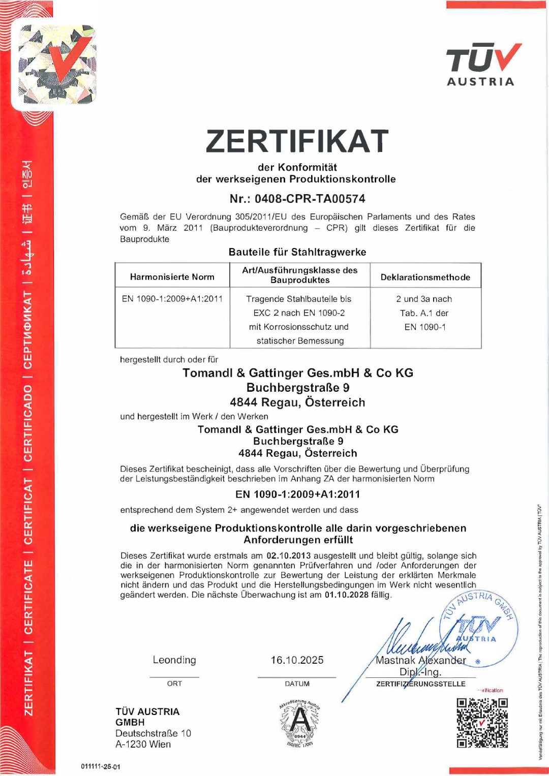 Bei Tomandl & Gattinger ist Qualität nicht nur Leitmotiv des täglichen Tuns, sondern wird zudem durch eine Vielzahl an Zertifizierungen formal bestätigt und gesichert.